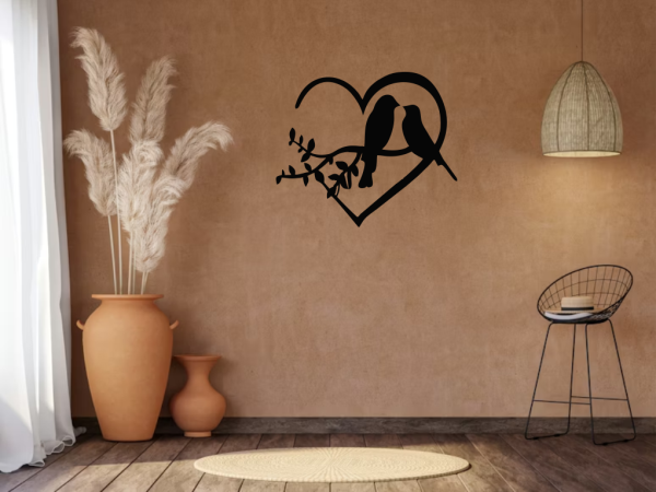love birds metal wall art, romantic wall decor, bird couple wall art, metal love decor, lovebird wall sculpture, wedding gift wall art, anniversary wall art, bird silhouette wall art, romantic metal artwork, couple wall hanging, metal bird decor, heart and birds art